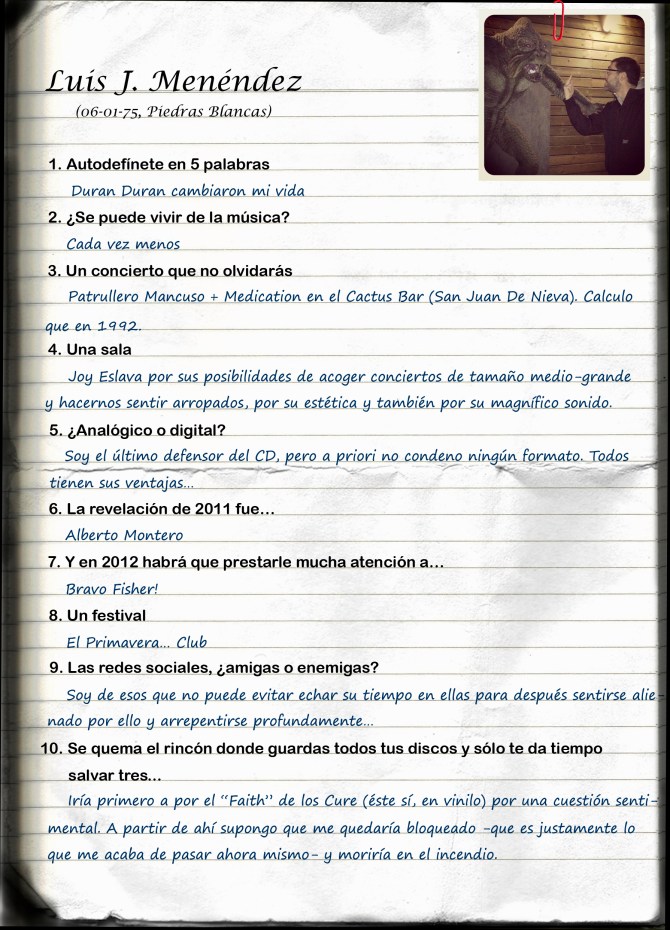 Para celebrar el inicio de las Fiestas Demoscópicas 2012, nosotros os traemos hoy un nuevo (Auto) Retrato. Luis J. Menéndez, uno de los redactores jefe de MondoSonoro, se convierte en nuestro séptimo invitado.