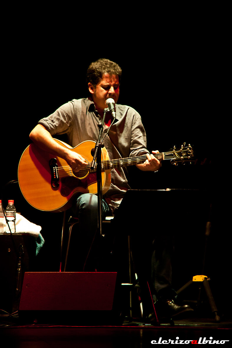Pocos minutos pasadas las nueve de la noche se apagaron las luces y salió a escena José Ignacio Lapido acompañado de su banda y arropado por un estallido de aplausos y vítores. En esta ocasión acompañaban al granadino los músicos Popi González (batería), Víctor Sánchez (guitarra) y Raúl Bernal (órgano y piano). La velada comenzó algo accidentada. El sonido falló y el técnico cruzó raudo el patio de butacas y el escenario para solucionarlo. Así pocos segundos después comenzó a sonar “No sé por dónde empezar”, un tema del segundo álbum de Lapido en solitario, Música celestial, a la que siguió “Nada malo” de Cartografía, su penúltimo trabajo de estudio. Con este arranque pudimos intuir que Lapido no iba a hacer un concierto basado en su último disco De sombras y sueños, publicado en 2010, sino que se trataba más bien de un repaso a toda su carrera, que quizás también incluiría algunos temas de su etapa con 091 –o “los cero” como dicen algunos–.