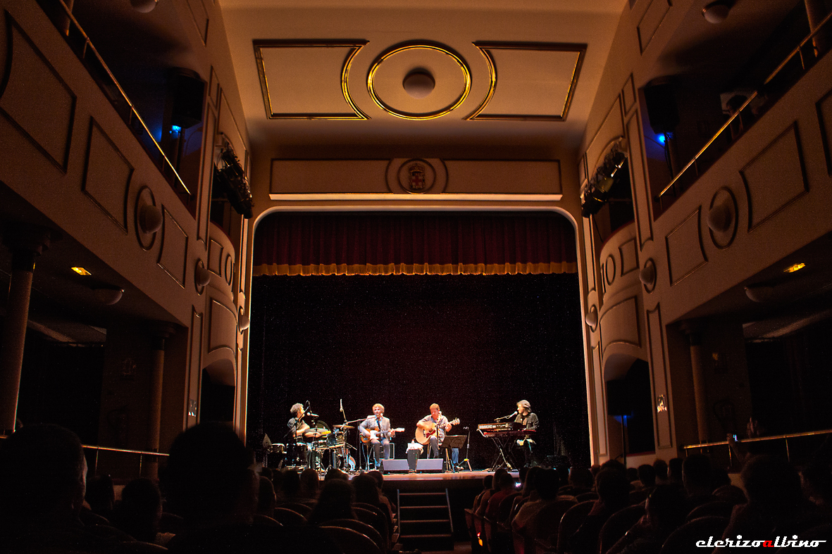 Por fin llegó el anhelado día en el que El Poeta Eléctrico se reencontraría con sus numerosos seguidores almerienses. Mientras caminaba hacia el Teatro Apolo, me preguntaba si la omnipresente crisis económica o el día y hora escogidos (un jueves a las 21h) harían mucha mella en la afluencia de público. Al entrar al patio de butacas se despejaron mis dudas y temores; tanto la platea inferior como el patio de butacas estaban casi llenos y lo que alcanzaba mi vista de la platea superior se veía también con bastante gente.