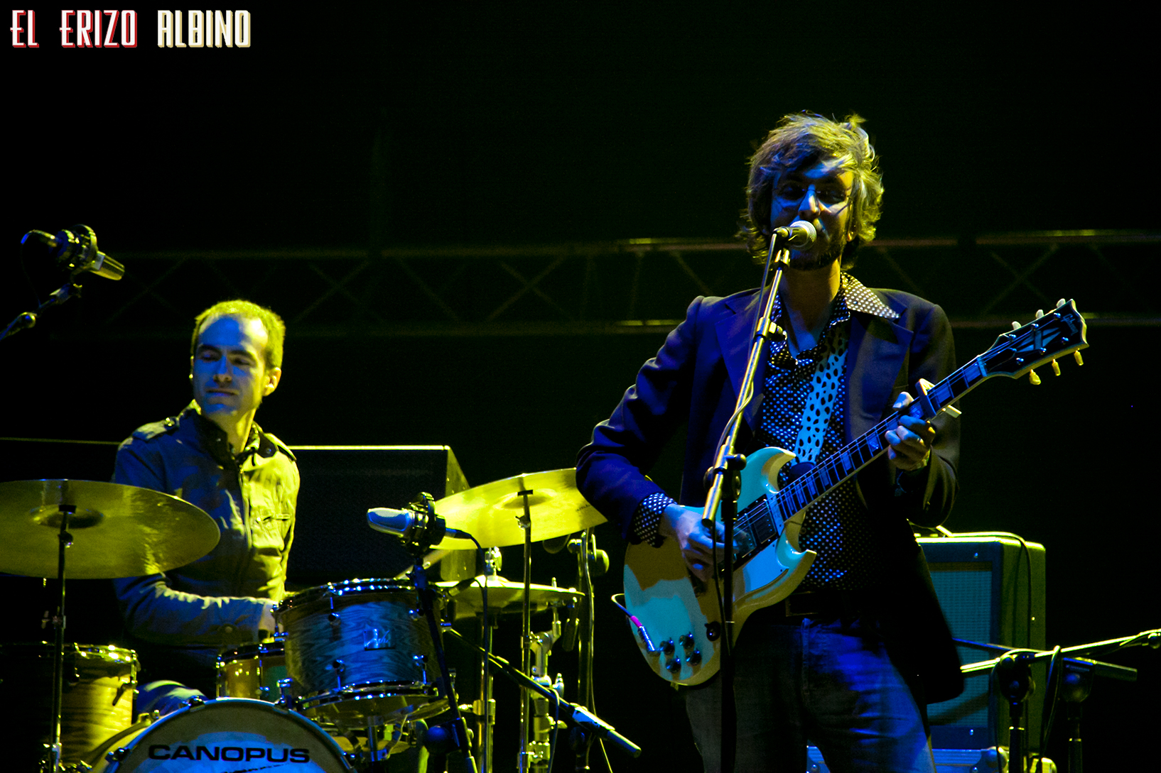 Pasaba media hora de la medianoche cuando Lori Meyers abría su actuación. Los de Loja sonaban muy lejos de cómo suelen sonar; la voz a veces se oía, a veces no; la batería sonaba lejana y las guitarras estaban descompensadas. Nos pareció inaudito, la verdad, porque siempre que hemos visto a Lori Meyers ha sonado bastante bien. Quedaba claro que el cambio de equipo había mejorado la situación de días anteriores -esta vez al menos se oía- pero tampoco fue para tirar cohetes como dicen otros. Sin embargo, al público no paLori_Meyers_2reció importarle o se resignaron -no se escuchó ninguna queja como en días anteriores-. Los granadinos eligieron un setlist que alternó temas bastante tranquilos como “Religión” o “El tiempo pasará” (con colaboración de Anni B Sweet) con otros más movidos como “Planilandia” o “Emborracharme”. Aunque el público estaba entregado, fue hacia el final del concierto, con “Huracán” y “Alta fidelidad” cuando el ambiente empezó a parecerse a un concierto de Lori Meyers de verdad. Con el público en su punto más álgido, abandonaron la escena para a los pocos segundos aparecer Noni y Alejandro para interpretar su versión de “La caza” en homenaje al recién fallecido Junior.  Terminado el tema se incorporó el resto de la banda e interpretaron “Luciérnagas y mariposas”. Para poner el punto final a su actuación escogieron “¿Aha han vuelto?” encadenada con la esperada “Mi realidad”, lo que supuso el momento más remarcable de su actuación.