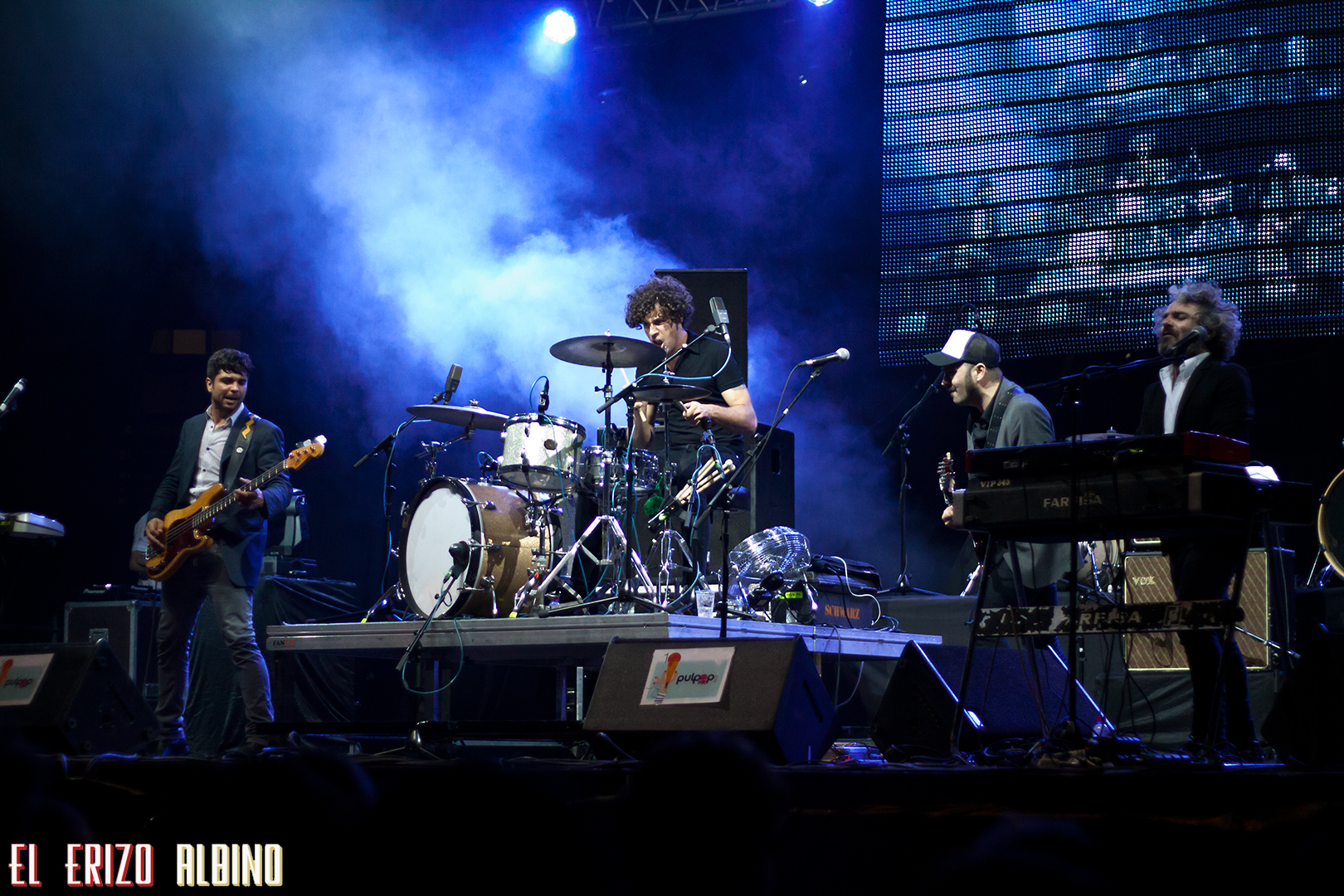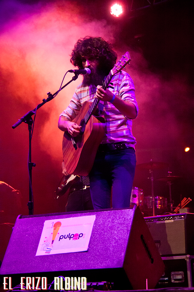 exhaustos a muchos y el retraso acumulado junto a un breve error de iluminación dio pie a que algunos pensaran que el festival había terminado, pero nada más lejos de la realidad. Faltaba todavía el tiro de gracia para dejar nuestros cuerpos para el arrastre, y es que la oleada de frescura e irreverencia que supuso la actuación de Perro nos hizo gastar nuestro último aliento en saltar y entregarnos a los ritmos de los temas que componen Tiene bacalao, tiene melodía (Miel de Moscas, 2013). Para terminar su actuación y cerrar las actuaciones de esta edición del Pulpop Festival, la banda murciana sorprendió con un grupo de espontáneos y espontáneas que salieron al escenario a darlo todo con ellos en el último tema –me recordó a cuando Second invitaba a sus seguidores a subirse al escenario con “Todas las cosas”-.