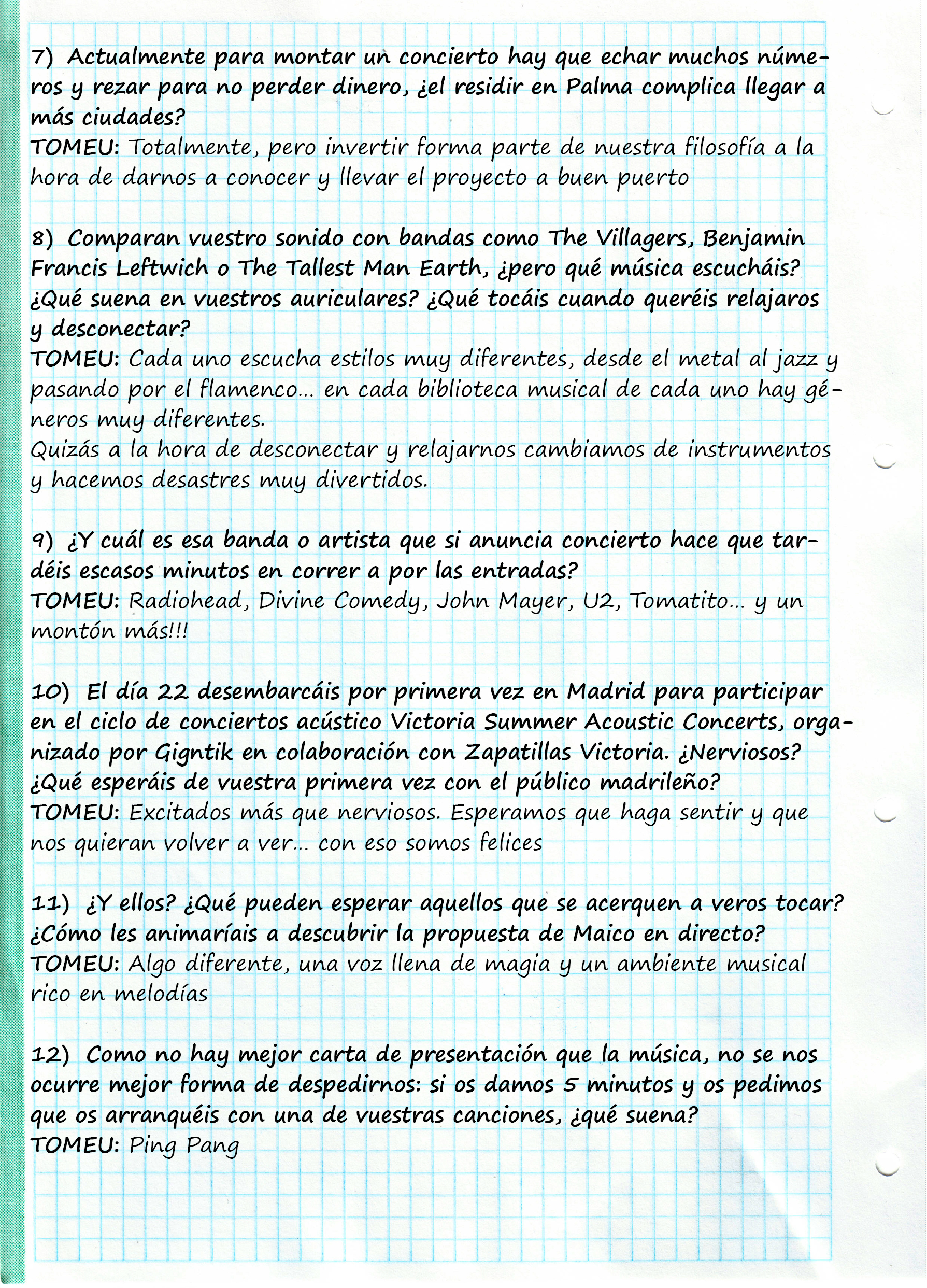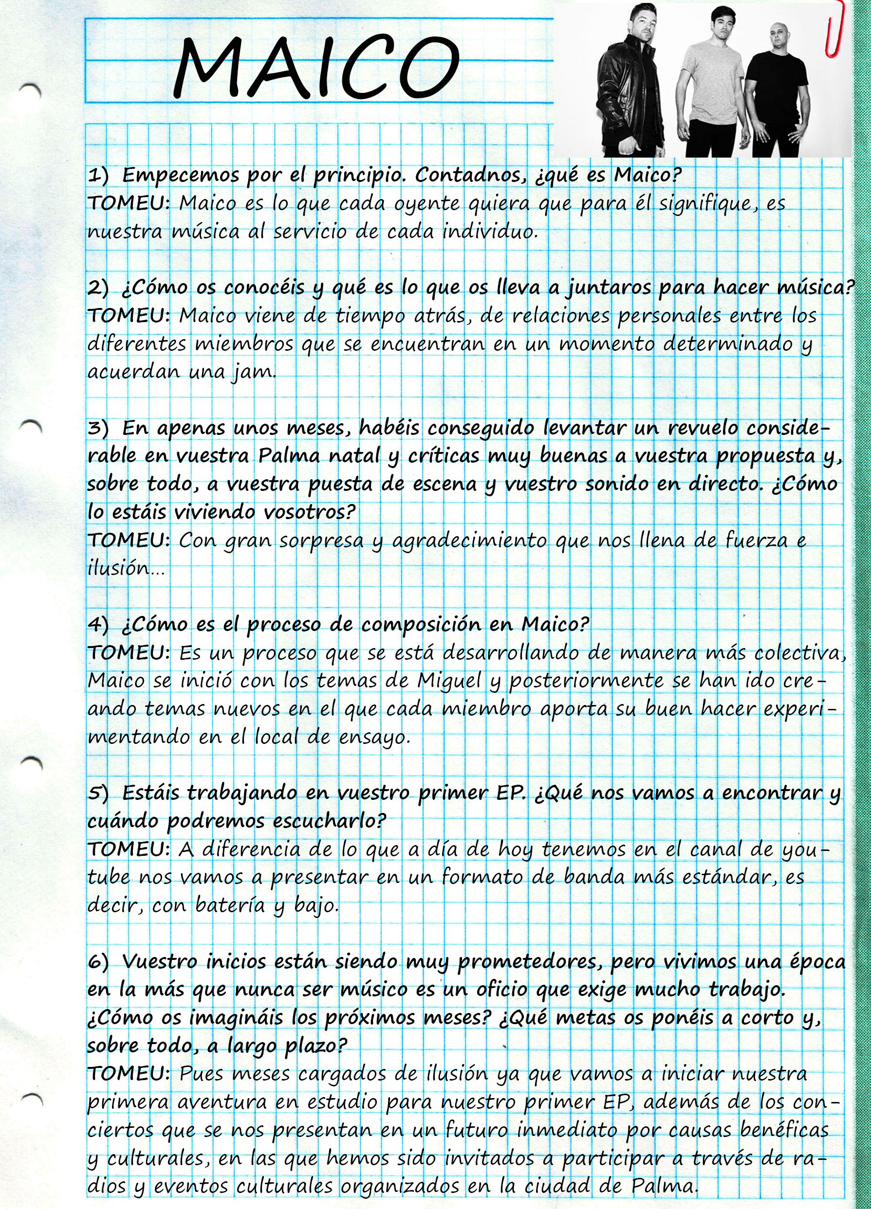 Mañana viernes 22 de agosto tiene lugar una nueva cita de los Victoria Summer Acoustic Concert (+info: aquí), donde podréis descubrir a la banda malloquirna Maico en su primera incursión madrileña. Además la velada contará también con la actuación de Lucía Scansetti. Antes de la cita hemos hablado con Tomeu Ferrá, uno de sus miembros, para conocerles un poco mejor. Aquí tenéis el resultado, os presentamos a Maico.