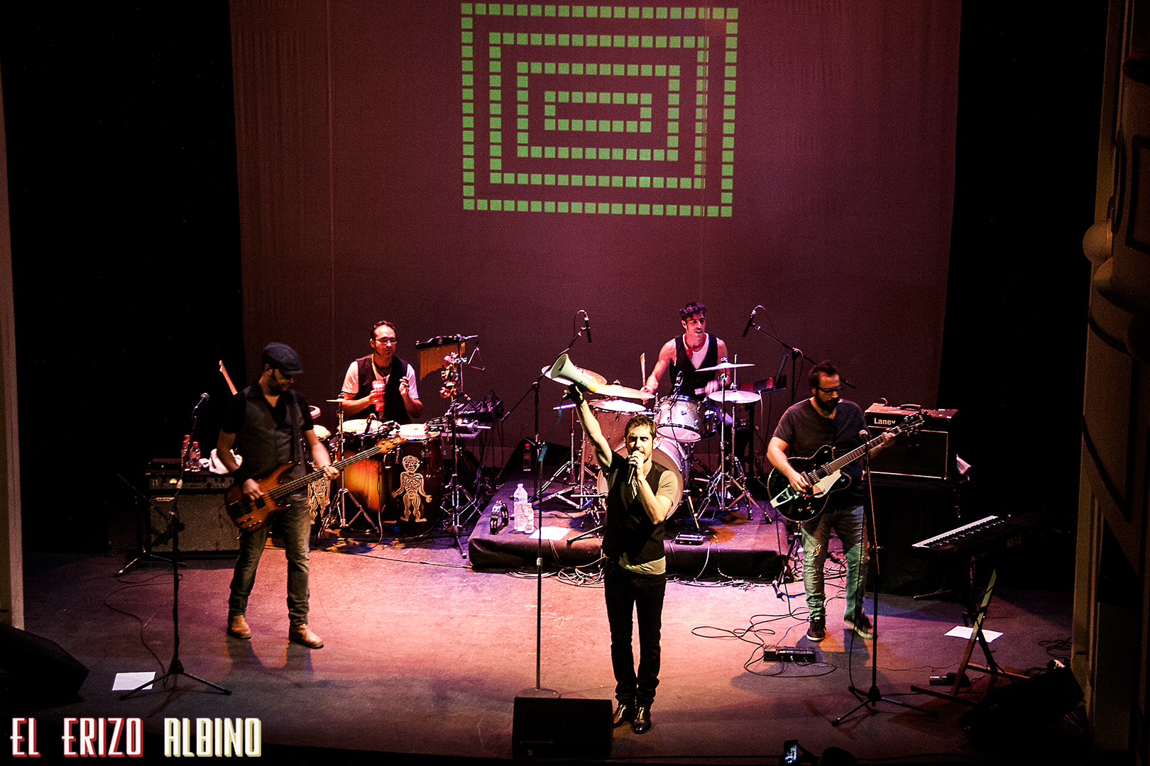 Pasan 5 minutos de la hora cuando suena el timbre y se atenúan las luces, para pocos minutos después volver a sonar y dejar la estancia completamente a oscuras. El telón, que estaba bajado, comienza a subir mientras empiezan a sonar los acordes de la intro de “Invencibles”, canción que también abre el disco que nos van a presentar. Un tema que va de menos a más en intensidad y que es recibido con una calurosa acogida por parte del público. También comprobamos que José Serrano (voz), Luismi Sierra (guitarra y teclados), José Terol (batería) y Antonio Sánchez (bajo) vienen acompañados para la ocasión de José Antonio Villodres, encargado de percusiones y metales.