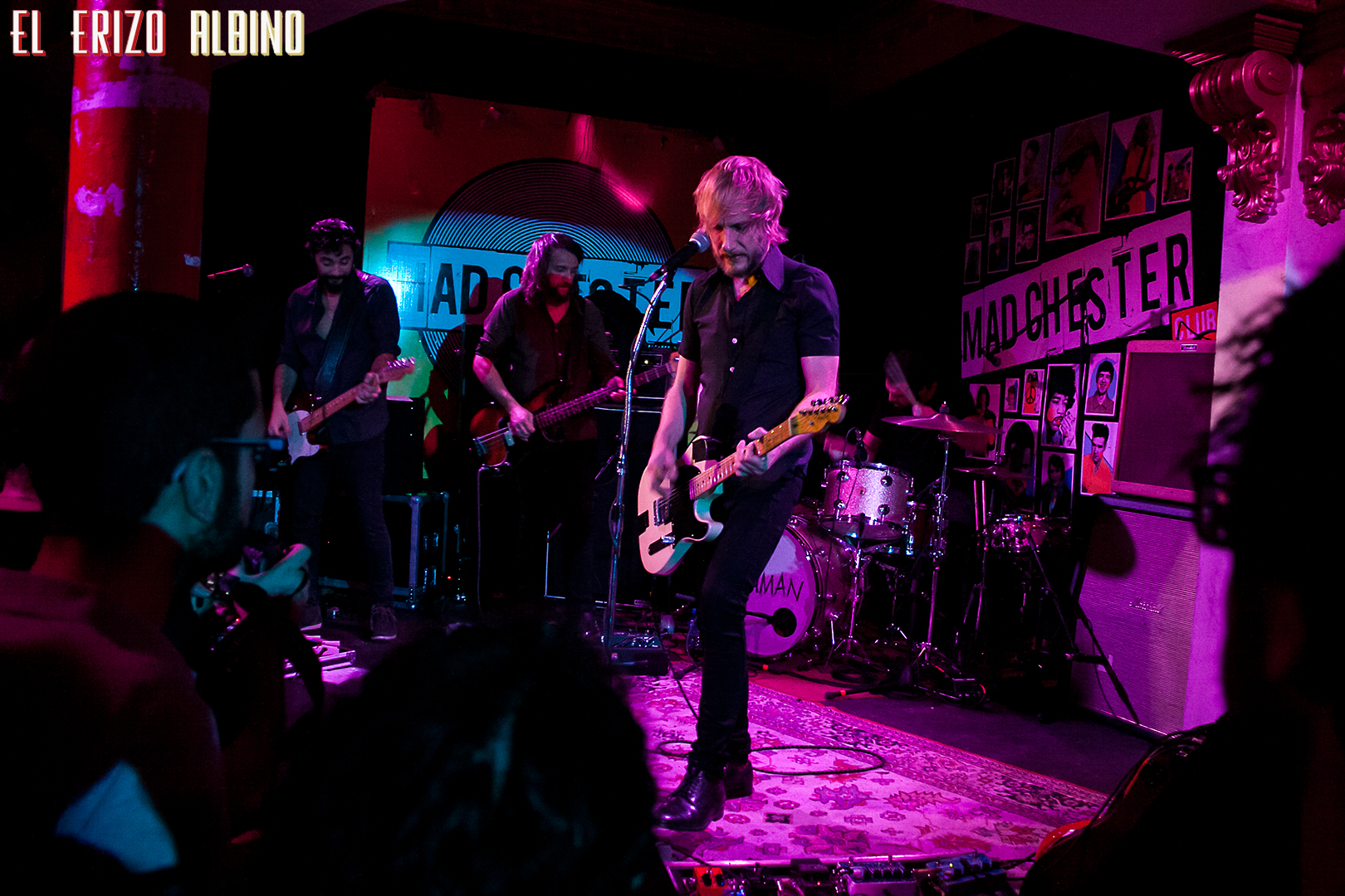 Al llegar a Madchester Club comprobamos que hay una afluencia de público considerable, así que nuestros miedos sobre el aforo vendido por tratarse de un jueves se disipan. Pasan veinte minutos de las once cuando Paco Roman, Fernando Lillo, David Manzullo, Alex Dumdaca y Juan Salinas suben al escenario con una calurosa