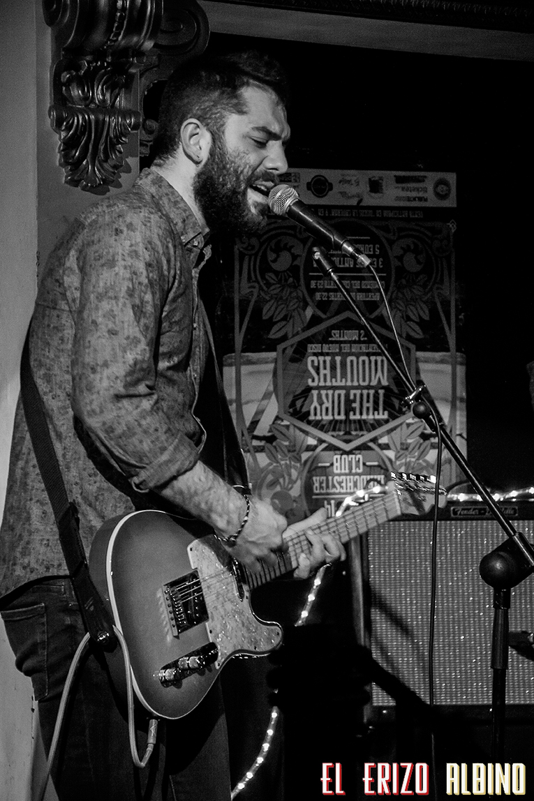 una gran ejecución, haciendo a los presentes disfrutar con unos ritmos bien marcados que son el mejor acompañamiento para las directas letras a las que da vida Rafa con su voz. Tras “Nadie te devolverá el favor”, el tema que abre el mini LP, se dirigieron al público para compartir que “Llevamos un año en activo y éste es el concierto número once o así”, dicho lo cual agradecieron a Ernesto el hacer el sonido, a la gente de la sala por su trato y a Laureano por darles la oportunidad. Con “Palos y Piedras” anunciaron la recta final de un concierto que se nos estaba pasando volando. Continuaron con “Los años” seguida de otra nueva, para cerrar finalmente con el intenso tema “Mamá, te va a encantar”, que alternaba suavidad y potencia sin perder su trasfondo de melancolía. Desde El Erizo Albino les deseamos lo mejor y esperamos que les llamen de muchos festivales para así llegar a más gente. Sinceramente, quien tenga oportunidad que vaya a verles tocar, no se arrepentirá.