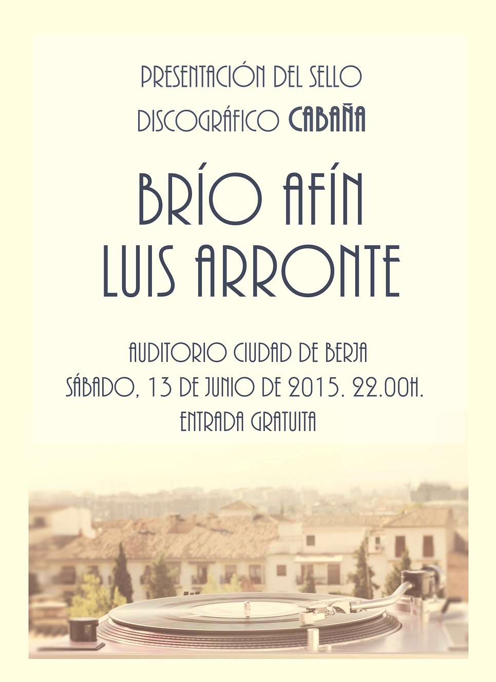 Para presentar Cabaña en la provincia de Almería este próximo sábado 13 de junio Brío Afín y Luis Arronte ofrecerán un concierto gratuito (entrada libre hasta completar aforo) en el Auditorio Ciudad de Berja a las 22h.