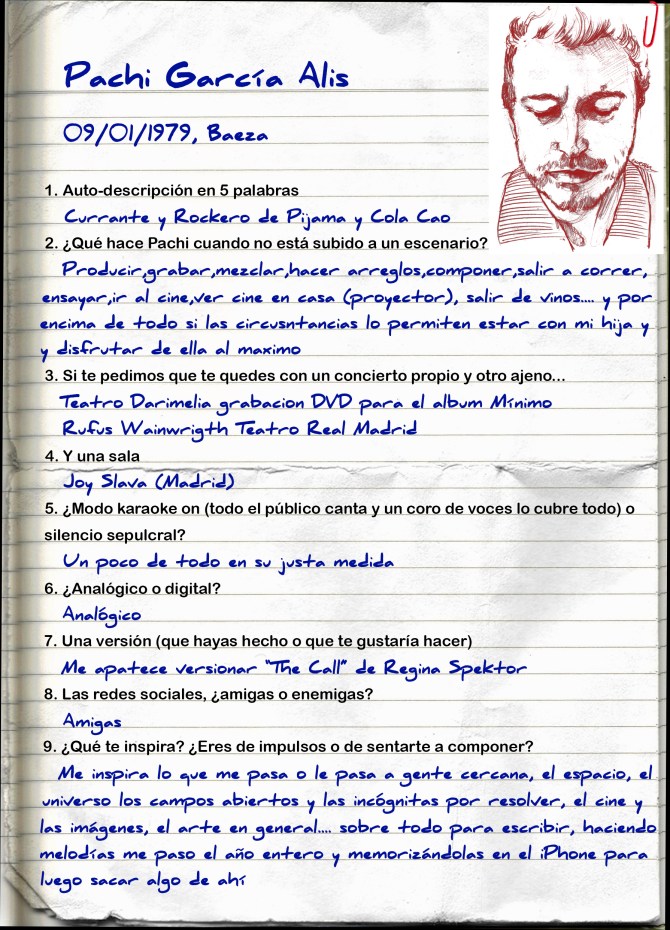 Desde que iniciamos la andadura de este blog, siempre hemos tenido la mejor de las intenciones y hemos tratado de hacerlo lo mejor posible dentro de nuestras limitaciones. Pero eso a veces no es suficiente, las circunstancias nos superan y hay crónicas o entrevistas que se quedan en el camino. Hoy, con bastante pena por el motivo, recuperamos una entrevista que teníamos atascada en un cajón y que le hicimos hace ya meses a Pachi García de ALIS. El motivo es el punto y final a la andadura de ALIS: después de 6 discos, una nominación a los Premios Goya y más de 300 conciertos, Pachi decide cerrar una etapa, finalizar el proyecto de ALIS y abrirse a nuevos horizontes. Para darle el final merecido a la trayectoria de ALIS, esta noche tendrá lugar el último concierto en el Café Teatro Central de Baeza. Nosotros no podíamos dejar pasar la oportunidad de ver a esta gran banda una última vez, así que acudiremos a la cita para disfrutar una vez más de su buen hacer.