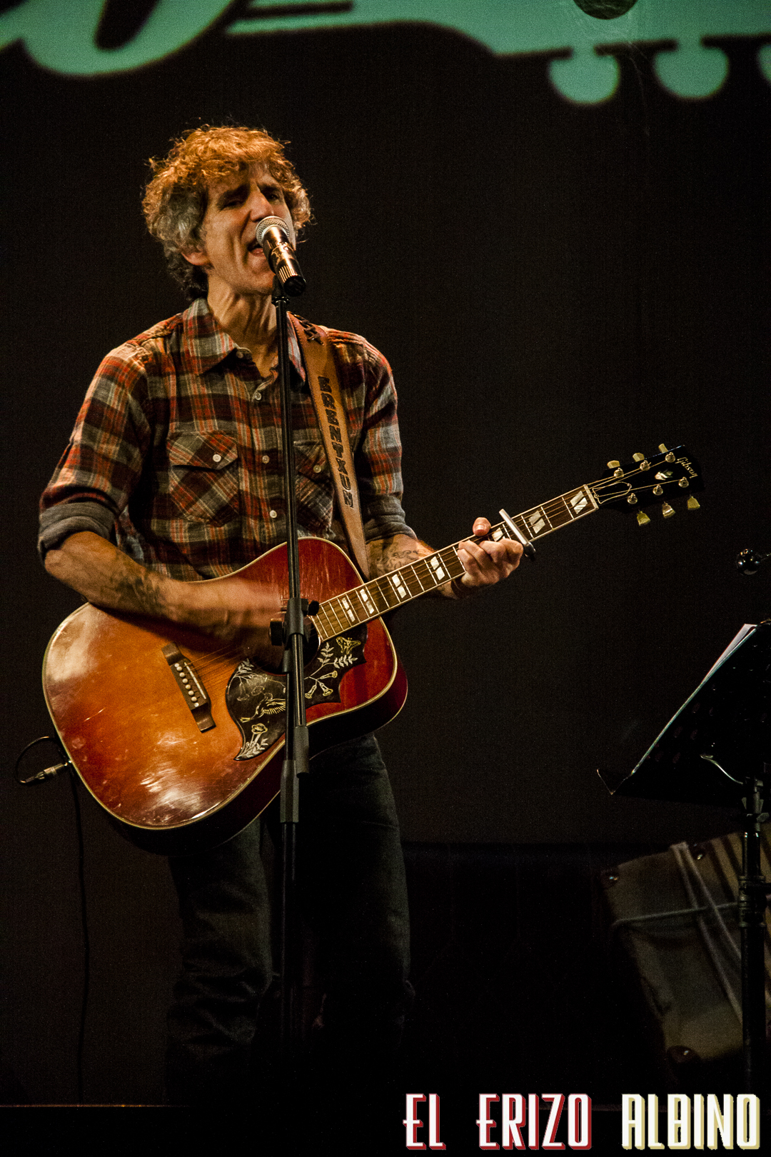 Pocos minutos pasaron antes de que empezase a sonar una guitarra y se apagasen las luces mientras se levantaba el telón, dejando ver a un Mikel Erentxun sentado en un taburete tocando “Estampida”. Terminado el tema, afinó y prosiguió sin mediar palabra con “Tu nombre en los labios”. El sonido era bueno y Mikel se ganó a los presentes desde el principio. La comunión con el público era total y se notaba la satisfacción del respetable con cada aluvión de aplausos tras cada canción. Mientras se colocaba la armónica dio las gracias y se lanzó entonces con “Cuando no me tengo” y “El corazón del dragón”.