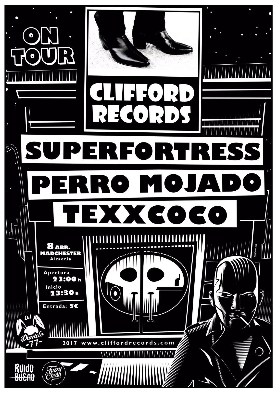 A Superfortress ya les hemos visto en directo y sabemos cómo se las gastan, así que nos apena perdernos ese derroche de energía sobre las tablas. A Perro Mojado no hemos tenido el placer, por lo que esperamos tener pronto otra ocasión. Pero con Texxcoco tenemos una especie de maldición -que también hemos tenido con otros grupos- y es que siempre que vienen por Almería hay algún motivo por el que no hemos podido ir a verles en vivo. Eso sí, por las escuchas de los dos vinilos editados con Clifford, estamos deseando conseguir asistir por fin a un directo del grupo.