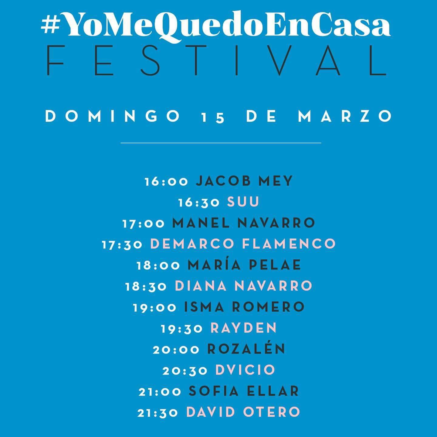 Os dejamos con el cartel y la distribución por días de este primer #YoMeQuedoEnCasa Festival pero os recomedamos que estéis muy atentos a las redes sociales para ir descubriendo nuevas incorporaciones y horarios.