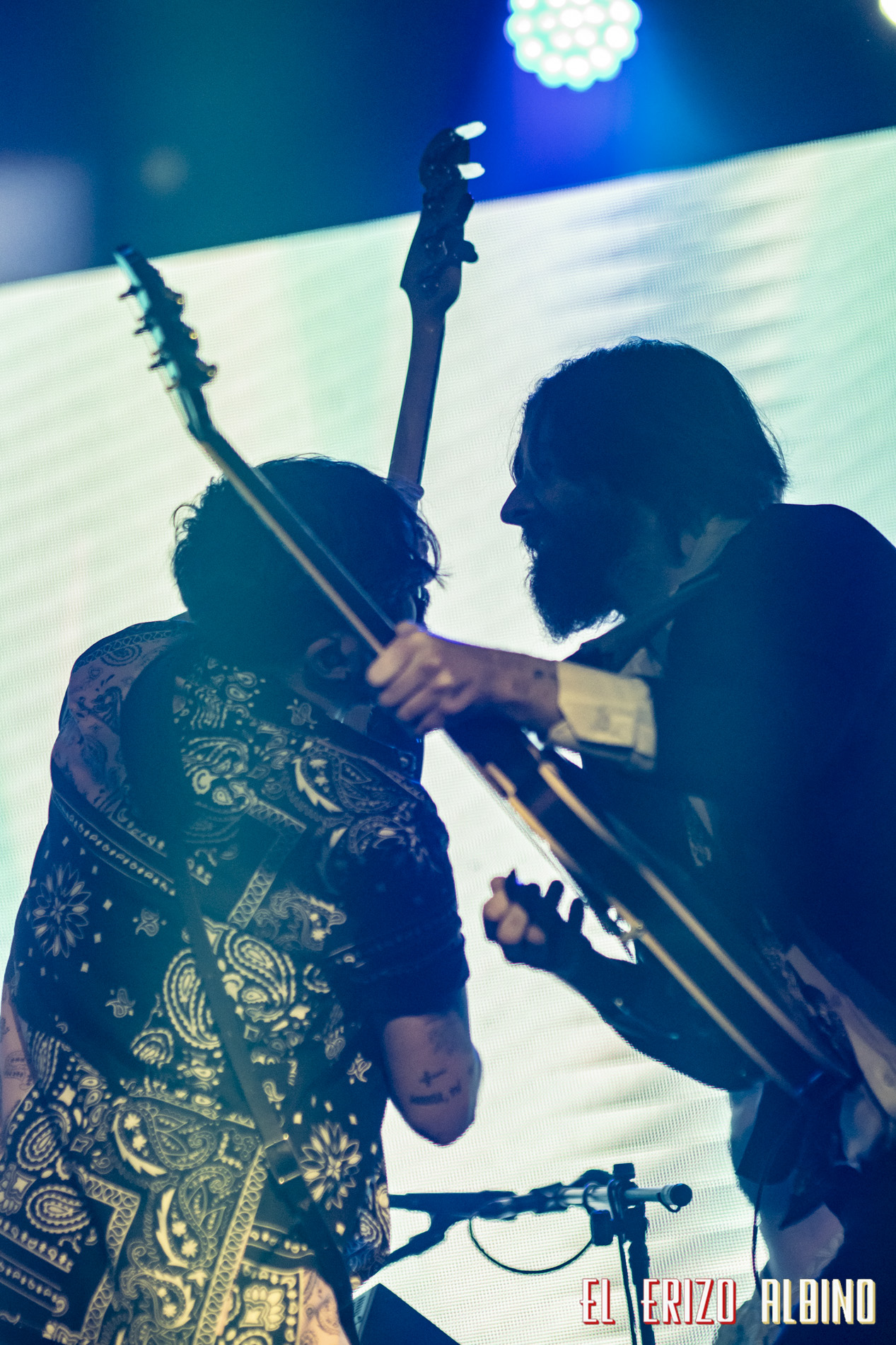 Llegó entonces el momento de uno de los temas que ansiaba escuchar en directo, de los que más veces escuché en Spotify en bucle cuando salió y de los que me hacen parar el vinilo y levantar la aguja para volverlo a poner, «Justo cuando el mundo apriete». Sí, volví a llorar. No sé explicarlo, hay temas que van más allá de poner la piel de gallina, llegan a tocar alguna fibra, calan hondo, y escucharlo por fin en vivo, pues me hizo emocionarme, como cuando se llora en la boda de un ser querido. Terminado el tema, volvieron a dirigirse al público «¿Habéis entrado ya en calor? ¿Podemos hacer ruido?», preguntas retóricas porque estaba claro que sí, aunque el público respondió un sonoro «SÍ» a pleno pulmón. Reanudaron entonces con «El rey desnudo», para dar paso a a un bucle de música que dejaron sonando mientras ellos salían del escenario y después dejarnos en silencio con unas luces moradas fijas.