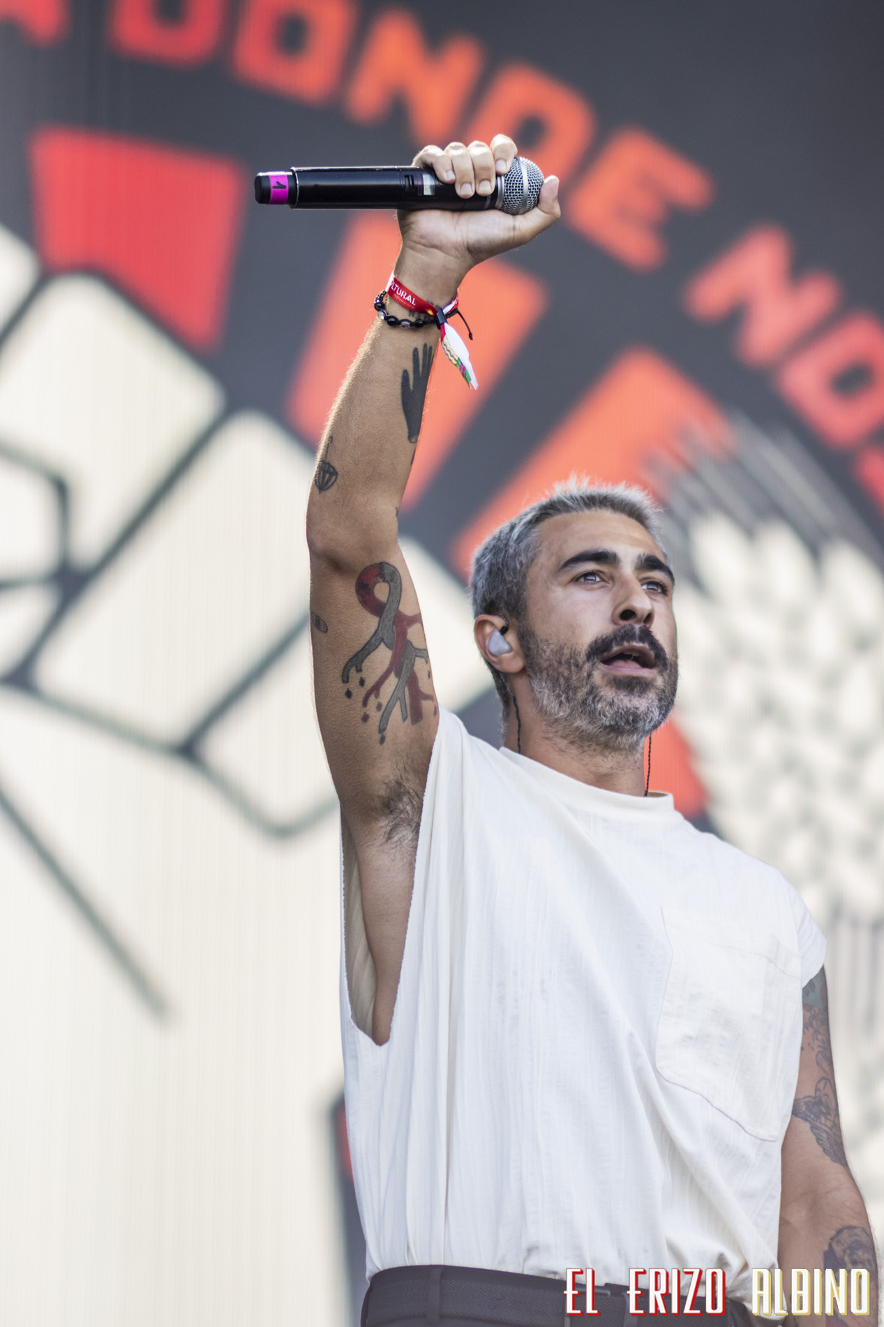 Terminado el concierto de Tu Otra Bonita nos trasladamos al Escenario Estrella Levante para presenciar el concierto de Rayden, que no es uno de mis artistas de cabecera, pero sí que había escuchado algunos temas, a través de sus colaboraciones con Mäbu, y le había visto una vez en directo. Hay que reconocer que aunque no termine de conectar del todo con su estilo, sus mensajes y su buen directo son innegables.