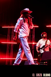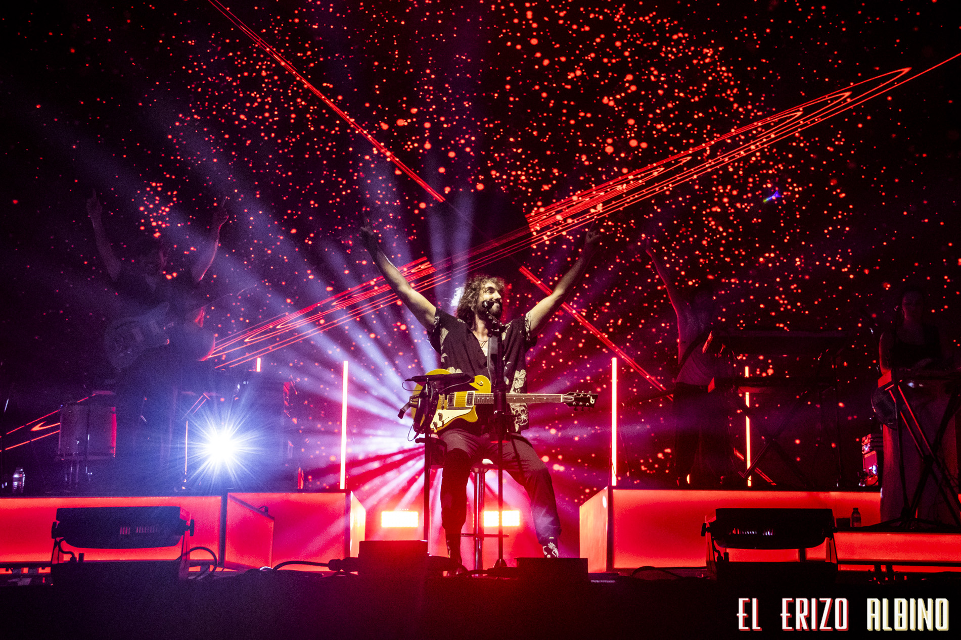 Sin embargo, lo que me encontré fue que la mayoría del repertorio se apoyó en los discos de la etapa de «grupo», con los hits como «El pozo», «Pánico práctico» o una de las que marcó un punto de inflexión en su carrera, «La mujer de verde». Tengo que confesar que esto me entristeció un poco, porque me dio la sensación que no se trata de una nueva etapa musical, sino de un mero cambio de formación de los músicos de acompañamiento. Que las canciones son suyas, sí, ya lo sabíamos, pero quizás hubiera estado bien una mayor proporción de temas de la nueva etapa o incluso alguna versión de algún clásico, para marcar de verdad una diferencia con la etapa anterior. Más allá de mi opinión personal sobre el repertorio, objetivamente el concierto sonó bien, los juegos de luces y visuales molaron mucho y la gente lo pasó en grande, cantando los temas a voz en grito.