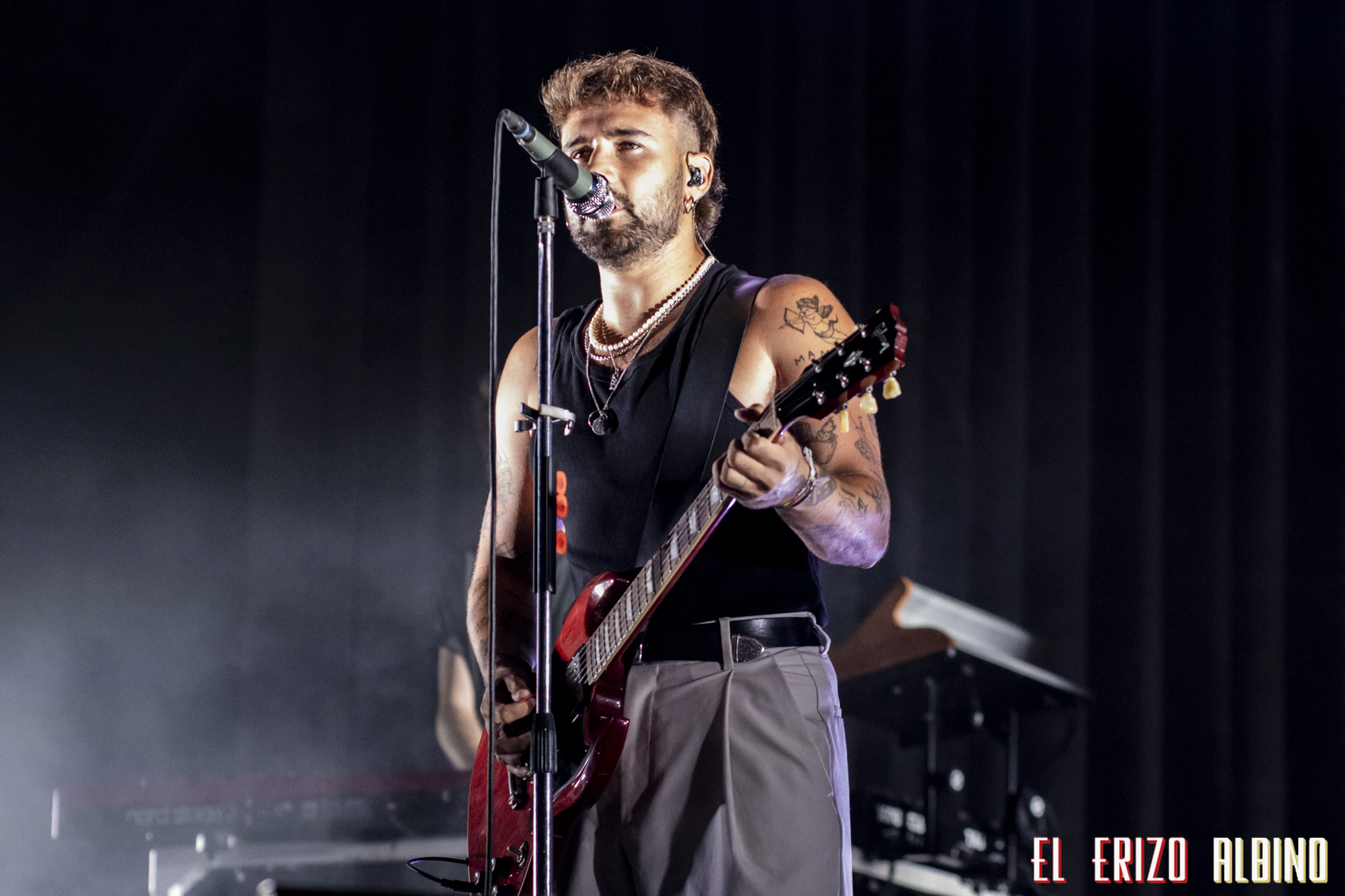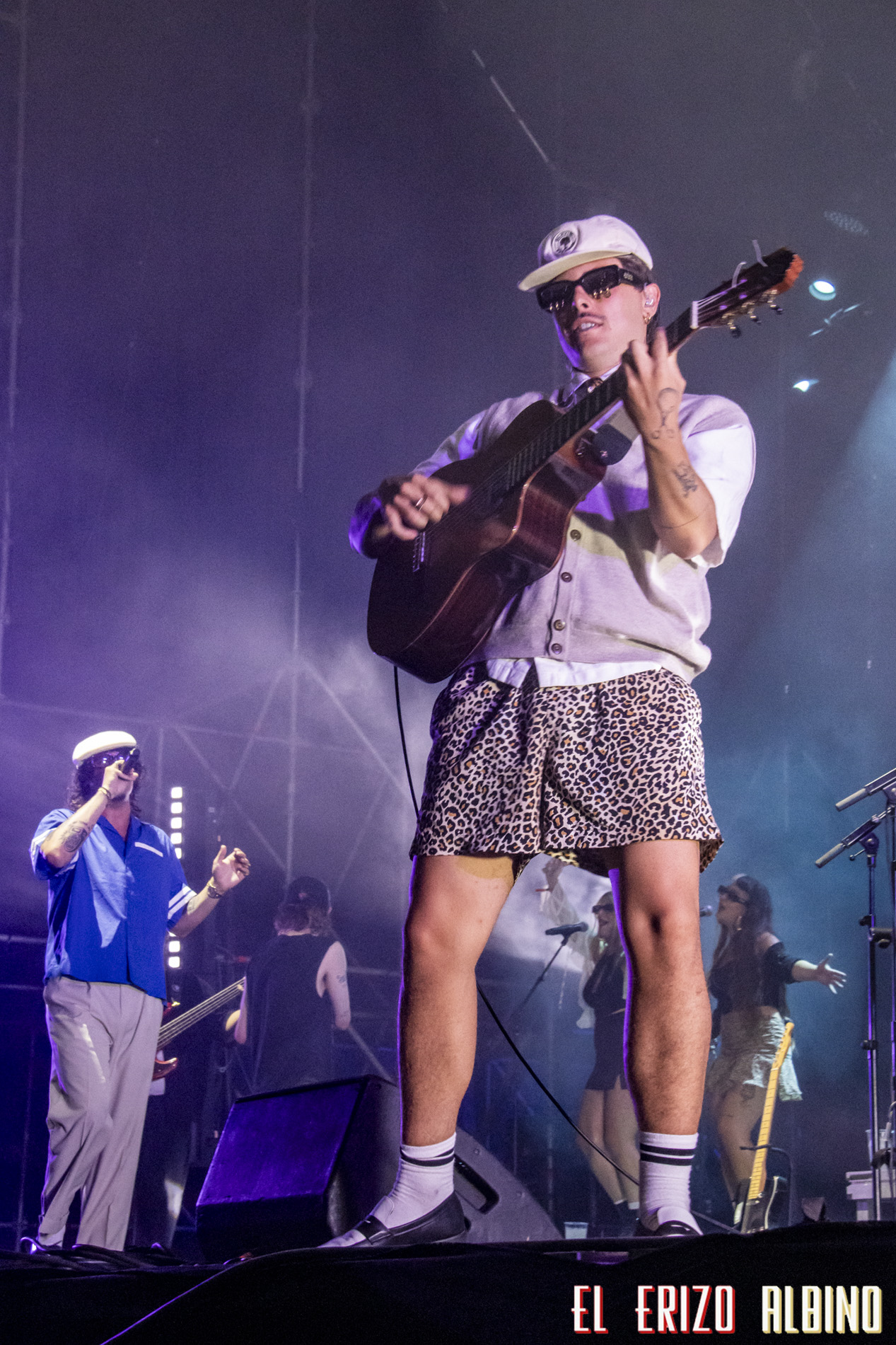 La propuesta del alcazareño fue defendida por él mismo y una buena banda de músicos que sonaron de forma notable, mostrándose muy compenetrados y haciendo gala de un buen rollo que se contagió al resto del público congregado. El tema elegido para abrir su actuación fue «Dile a los demás», uno de los más conocidos, una apuesta fuerte con la que dejaba claro que ponía toda la carne en el asador y que, efectivamente, funcionó, metiéndose al público en el bolsillo desde el primer minuto. Esto podía ser un riesgo, porque empezar tan arriba, luego puede desgastar y algunos pueden descolgarse, pero no fue así, ya que incluso los temas más tranquilos como «Artificial» eran cantados a pleno pulmón por la mayoría de los presentes.
