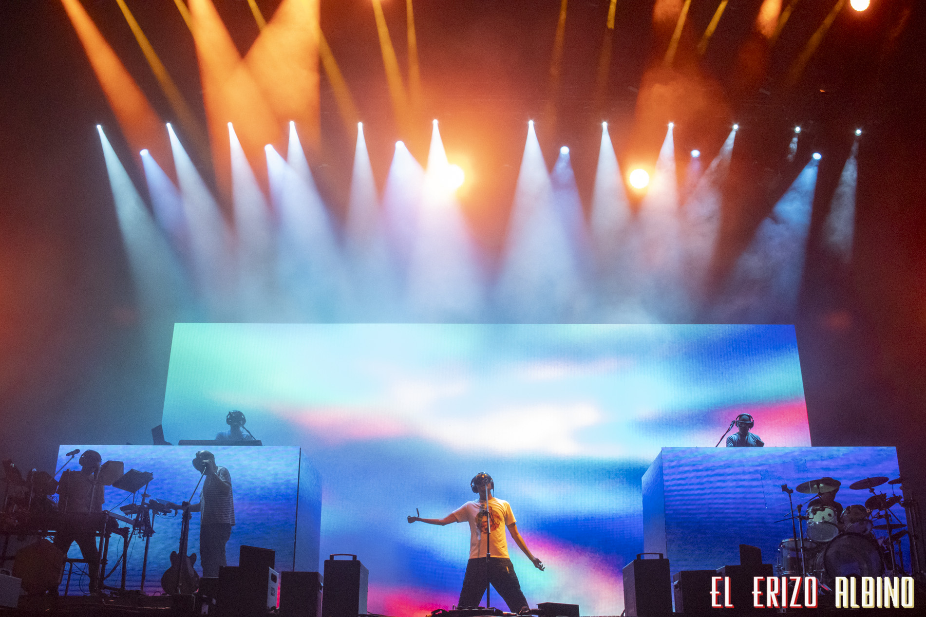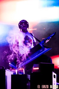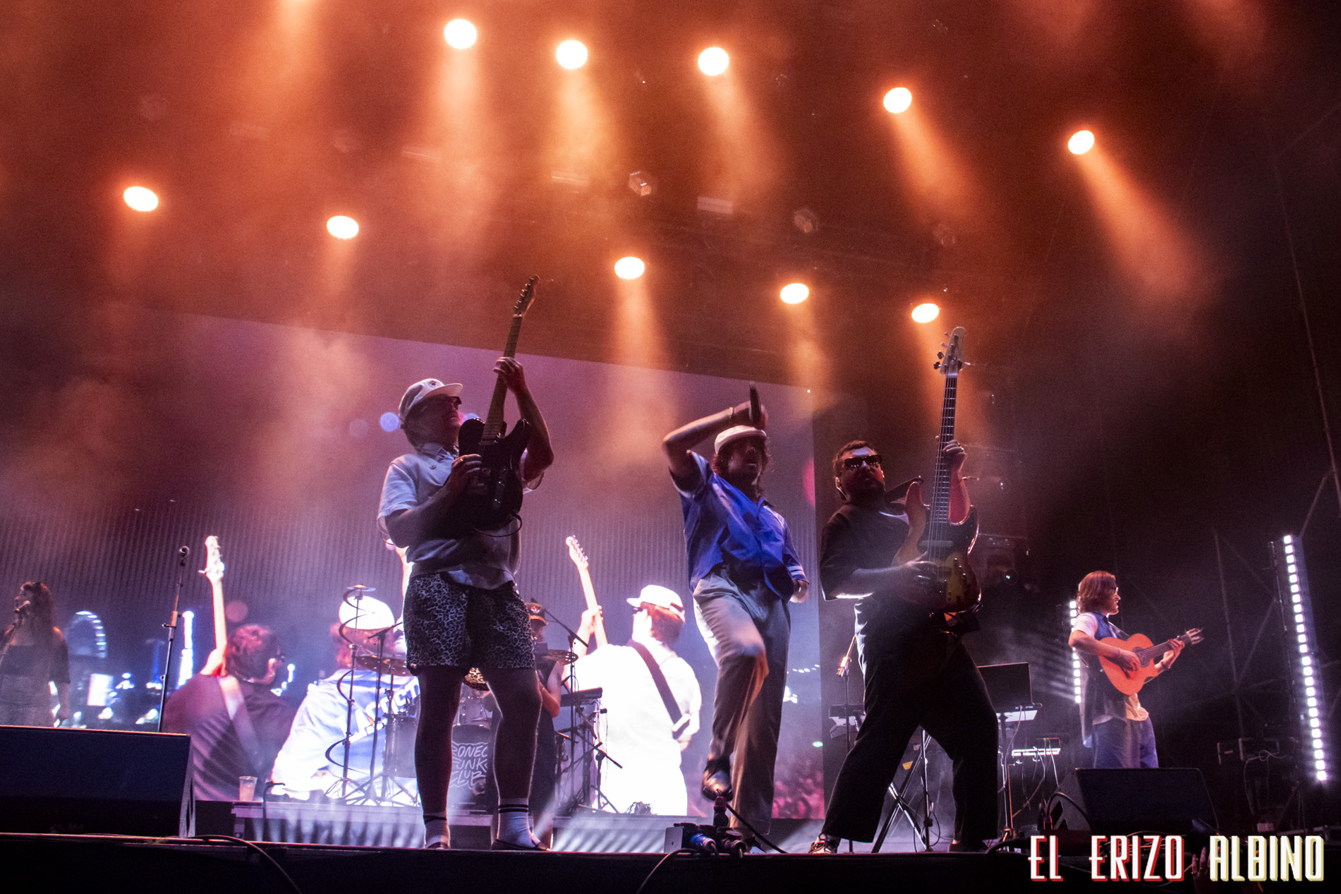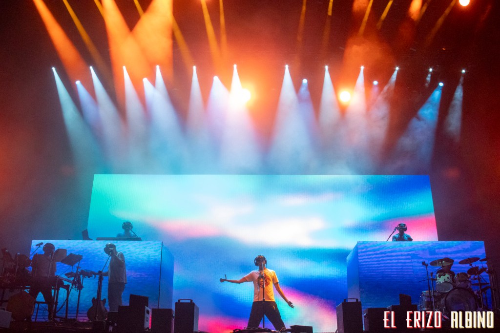 La puesta en escena del dúo, acompañado de una gran banda (batería, bajo, segundo guitarra, 2 voces femeninas a los coros) y un cámara que va emitiendo el concierto en directo por la pantalla mientras se mueve siguiéndoles por el escenario, a veces daba la sensación de fiesta algo descontrolada, pasaban muchas cosas sobre el escenario y no sabía uno donde mirar para no perderse nada. Pero algo que quedó claro es que su energía conquistó al público desde el primer tema. La fusión tan particular de la formación, de flamenco, funk y electrónica, hizo cantar y bailar a gran parte de los que todavía aguantaban por el recinto.
