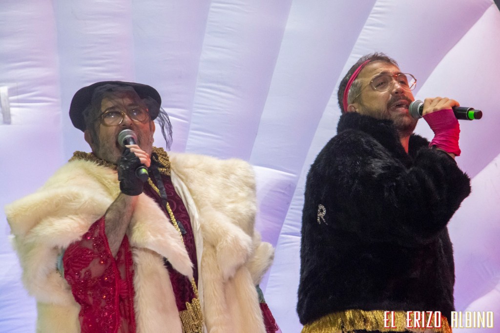 La entrada del dúo fue cuanto menos llamativa, dentro de una concha gigante blanca en el escenario que se abrió, levantándose primero Carlos Areces y posteriormente Aníbal Gómez, mientras hacían una versión de «El Rey» de Vicente Fernández. Después vinieron temas como «0,60», «Extremismo mal» (una de nuestras favoritas» y «Morreo». El público estaba totalmente entregado, cantando y bailando, pero nosotros ya estábamos bajo mínimos, así que marcamos retirada, que todavía nos quedaba la jornada del domingo, y no iba a ser tampoco ligera.