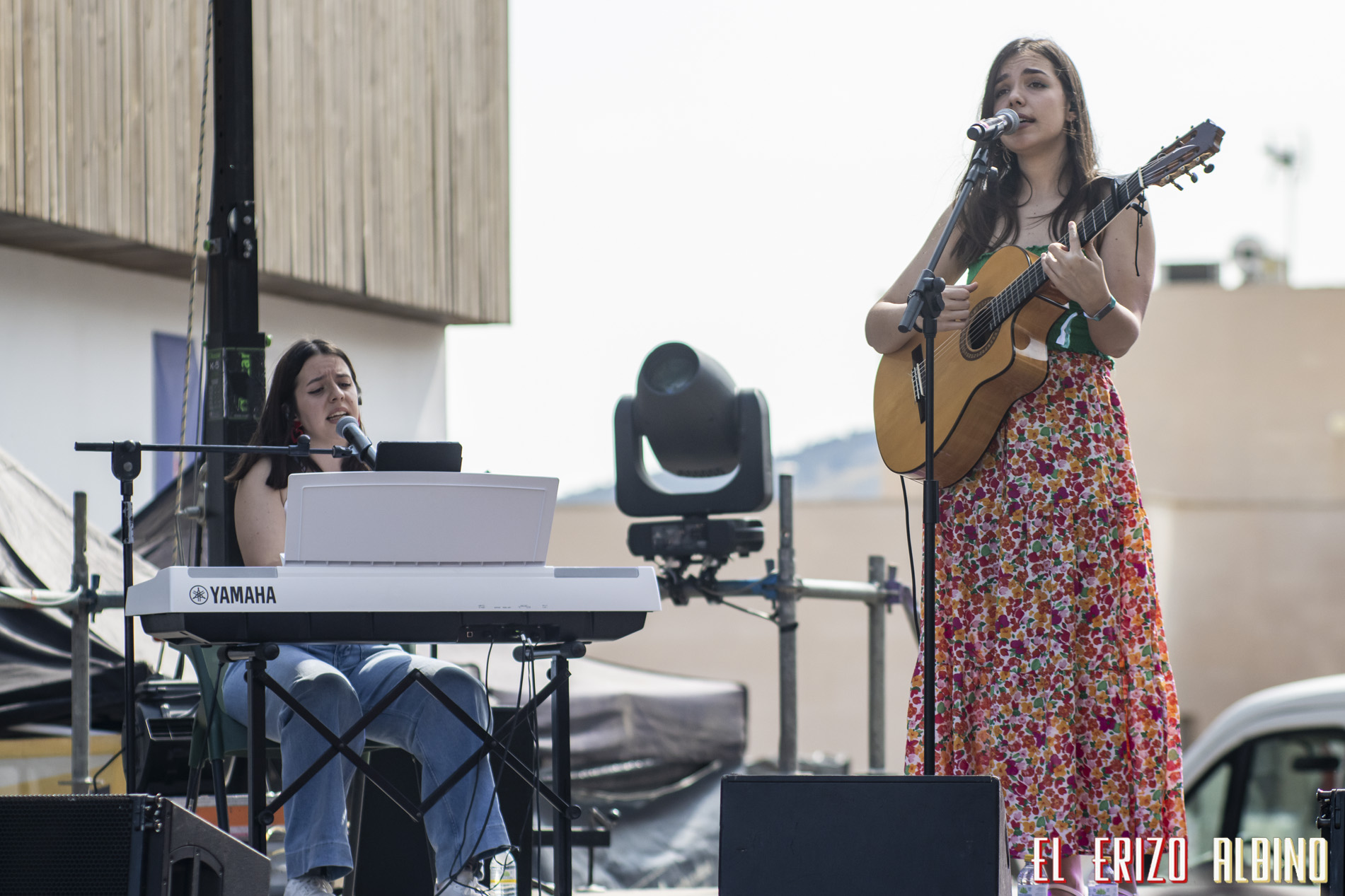 Terminado el concierto de La Perra Blanco la verdad es que necesitábamos sentarnos un rato, así que mientras una amigas buscaban un sitio donde tomar un café, quien escribe estas líneas se acercaba al Escenario Lagar para descubrir la propuesta de la cantautora malagueña Ángela González. Cuando llegamos estaba anunciando que era su primer concierto en formato trío, también aprovechó para dar las gracias al festival y a la gente que se había acercado a escuchar. Su propuesta era bastante más calmada que lo que había sonado antes, pero su dulce voz, la sensibilidad de su interpretación y unas letras honestas, nos parecieron unos pilares más que sólidos sobre los que cimentar una trayectoria. En su tiempo de actuación sonaron temas como «Quizás», «La canción más verdadera», tema que había compuesto para su «crush» según contó, y «To perfe», que sirvió de broche de una actuación que nos dejó con ganas de más, pero quizás en un entorno más cercano y recogido.