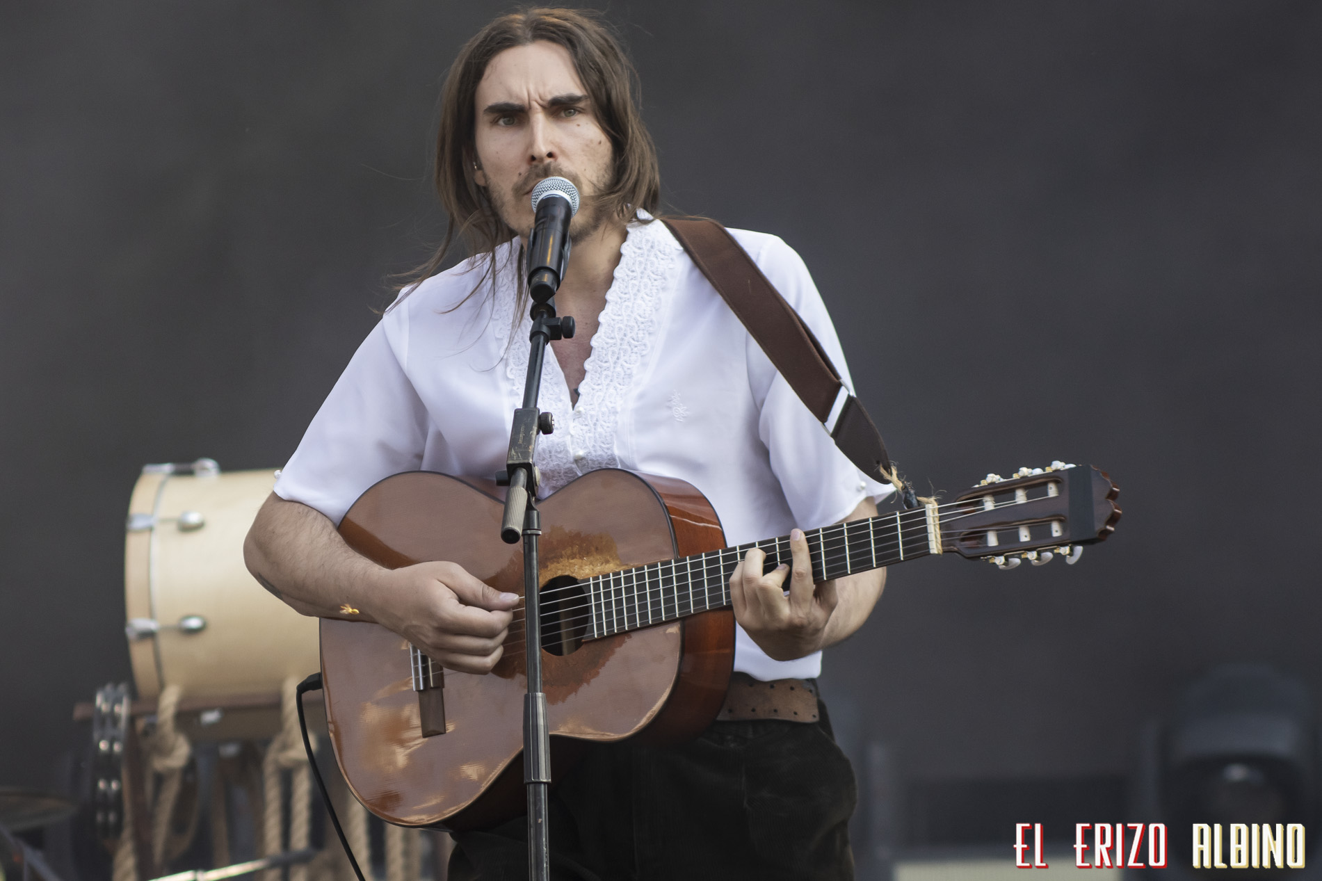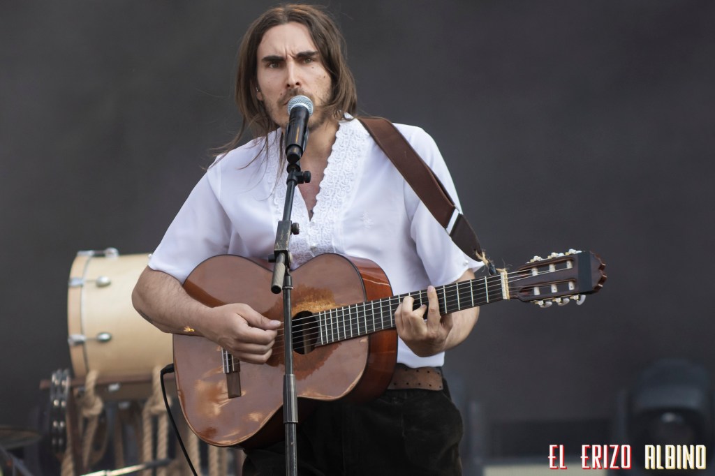 Si por algo nos caracterizamos aquí es por la sinceridad, y así va a seguir siendo. Así que ahora nos toca confesar que, cuando se anunció el cartel, desconocíamos absolutamente todo sobre Carlos Ares. Y que acudimos al festival sin hacer los deberes y habiendo escuchado únicamente una canción, también. Pero eso, que quizás podía ser una desventaja (no saberse las canciones), para nosotros fue una bendición; descubrir el repertorio de Carlos Ares, con el gran sonido en directo de toda la banda que le acompañaba, fue una experiencia espectacular. Nos sorprendió comprobar que dentro de esa banda militaba parte de La Sonrisa de Julia (Marcos Cao y Raúl Delgado), ¿cómo no nos habíamos enterado de nada de esto? En fin, que no podemos llegar a todo, pero sí que podemos disfrutar del presente, y eso fue lo que hicimos cuando arrancó el concierto con «Días de perros» y nos atrapó completamente. Una propuesta entre el folk y el pop, con violines, guitarras, teclados, percusiones,… en serio, flipante. La intensidad fue creciendo conforme pasaban los temas, que transitaban también otros estilos, como «Cigarra», menos melódico.