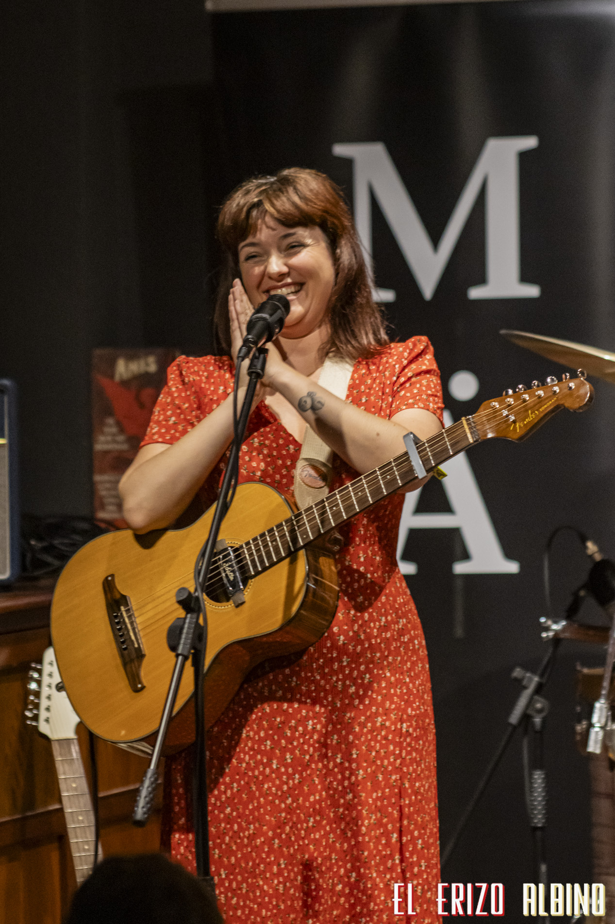 En otras ocasiones quizá se podría decir aquello de «Roto el hielo…», pero en esta ocasión no había hielo que romper. Mäbu no tocaba en casa geográficamente, pero sí en términos alegóricos, porque el público estuvo entregado y participativo desde el segundo uno. Así pues, María se dirigió a los presentes para contar que llevan 17 años de carrera y que probablemente fuese la vez 17 que venían a Murcia, «Pero hoy os ha dado a todos por venir, muchas gracias» comentaba entre risas. Acto seguido anunció que el repertorio haría un repaso a todos sus discos y que imaginásemos que estábamos en el salón de una casa, «Y si os la sabéis cantad, que si canta el público es más bonito», lanzó como petición. Petición que recogió el público y que siguió a pies juntillas.