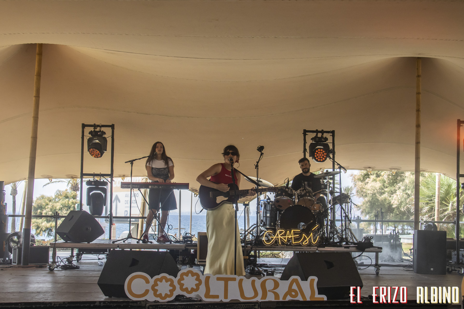 Como dijimos en la crónica anterior, teníamos el objetivo de asistir al Escenario Playa al concierto de Carmesí, así que, a pesar de que no teníamos las baterías al 100%, allá que fuimos, sabedores de que merecería la pena. A Carmesí tuvimos la oportunidad de verla en Berlin Social Club en febrero de este mismo año (perdón, la crónica se quedó en el tintero), y nos fascinó, por eso no queríamos perdernos su concierto.
