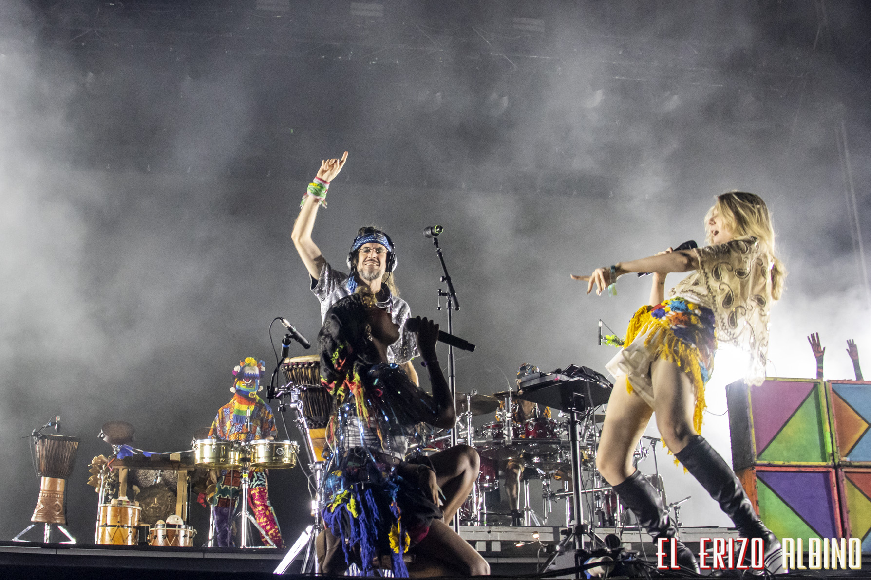 La mezcla de ritmos tribales y electrónicos, con la puesta en escena tan característica de la formación, hacían bailar y cantar sin descanso al personal. El repertorio avanzaba sin pausa pero sin prisa, compartiendo temas como «Turn up the love» o «You and I». El cierre vino de la mano de «Plage» y «Love natural», poniendo el broche de oro a una actuación que se podría convalidar por una sesión de cardio en el gimnasio.