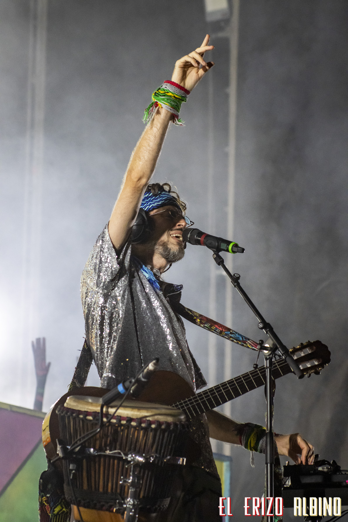 De vuelta en el Escenario Fundación Music For All, nos reencontramos con un grupo que, aún no siendo uno de nuestros grupos de cabecera, siempre disfrutamos mucho en los festivales en los que nos lo encontramos, nos referimos a Crystal Fighters. Y es que la propuesta de esta formación angloespañola es siempre una fiesta en directo, una de esas apuestas seguras si quieres bailar y estar de buen rollo. La canción que eligieron para abrir su actuación fue «I love London», un tema de 2009, con el que se metieron en el bolsillo al público desde el primer momento.