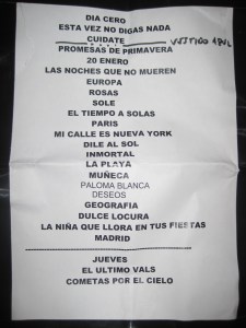 La gran emotividad del momento deja paso a un derroche de energía cuando el resto de los componentes de la banda entra en escena e interpretan “El último vals” con un público que se levanta y canta entregado. El concierto finaliza con otra de las nuevas, “Cometas por el cielo” (sin volar), que proporciona un final un tanto agridulce dado que los instrumentos vuelven a sonar algo estridentes como ocurriera en los primeros temas. Una pena, porque consigue deslucir el resultado final, pero con una banda que lleva más de doce años en los escenarios, con las posibilidades técnicas que brindan un buen equipo técnico y la buena acústica de un teatro, el nivel de exigencia no puede ser menor.